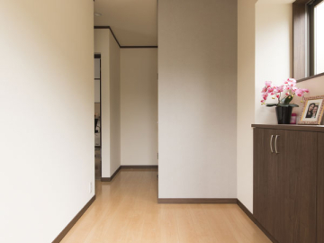 明るくて広い玄関は奥さまのお気に入りポイント。弊社お馴染みの出窓部分にご家族の写真を飾られたりと、その造りを最大限に活用されています。