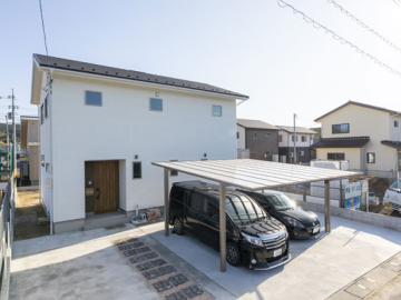 施主ご主人のお父様が、弊社でお世話になっている大工職人さんというご縁もあり、そのお父様自らが棟梁として腕をふるっていただき完成したのが、本物件・T 邸です。上下で揃えた6 つの窓がアクセントとなるデザイナーズハウス風の外観が象徴するよう、各間取りにゆとりを持たせた「Doハウス1150-LL」のポテンシャルを活かしつつ、シンプルさを基調としながらも、隅々までこだわりとアイディアを散りばめた、まるで注文住宅のような大胆なカスタマイズが大きな特徴です。