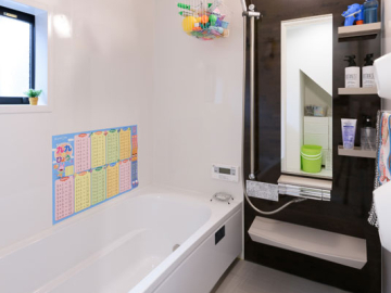定番の対面スタイルを採用したキッチンは、背面収納分の幅をしっかり取った上でフロアスペースも十分に確保。また、キッチンと最短の動線で繋がる洗面脱衣&バスルームは、洗面スペースから階段下を利用した収納空間まで、コンパクトながら必要なものをすべて備えたパッケージングも本モデルの大きな特徴で、「最初はちょっと狭いかな?と思っていましたが、実際に使ってみると十分に広くて。浴室もゆったり使えて良いですね」とオーナーN様も気に入ってくださいました。