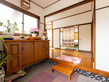 ベースとなった物件は、築年数はかなり経っているとはいえ、敷地、建坪とも愛犬を伸び伸びと遊ばせるには絶好の広さ。住宅の半分は過去にリフォームされていたことや、ご夫妻からの要望もあり、未改修だった残り半分を集中的にリフォーム。比較的に状態の良かったリフォーム済みの部分は、昔ながらの続き間の和室で、畳の張り替えはもちろん、瓦からガルバリウム製にリニューアルした屋根内部をはじめ、半分の間取りにリフォームを集中。愛犬部屋も備えて機能性も十分!壁と床下の断熱材施工で現代的な快適性を確保。さらに床の間と仏間のあった場所は、扉を新設して棚付き収納として利用するなど機能性もアップしました。