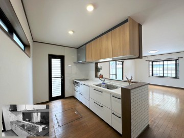 人気の対面キッチンはそのまま残し、新しく機能的な最新モデルに変更。壁紙や照明などの変更で、明るく綺麗なLDKに生まれ変わりました。
