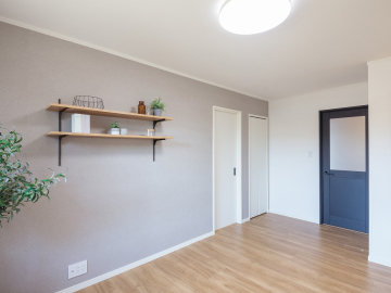 並んでいた旧ダイニングキッチンと居間(和室)は間取りをひとつにまとめてワンルームのLDKに改装。和室の続き間で構成されていた旧間取りを活かし、幅広い世代で使いやすい、スタンダードな広さのLDKに仕立て直しました。1階の個室がLDK以外に3つ確保できているのも本物件の特徴で、続き間の和室のうち、一室をフローリングの洋間に改修したことで、寝室や子供部屋、客間としても使えるようになりました。
